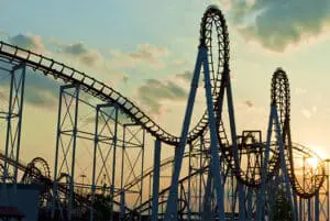 Acceleration: The process of moving faster or happening more quickly. A roller coaster is designed to create lots of acceleration!