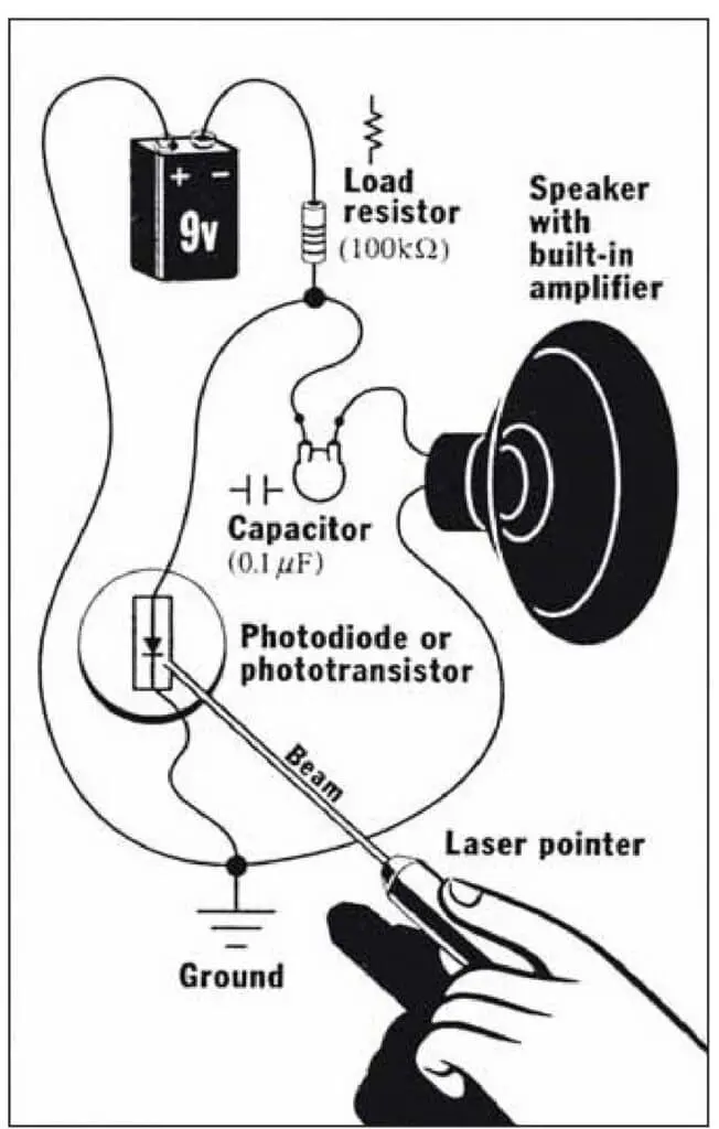 Students see how energy is converted between light, electricity, and sound as they learn how sound can be encoded into and transmitted by a light beam.
