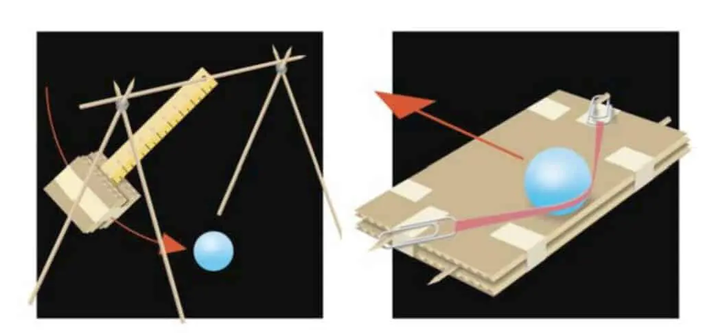 Students design a machine that kicks a ping-pong ball into a cup lying on its side a foot away, using a pendulum, rubber band, or combination of the two. They learn about potential and kinetic energy as they devise their simple machines.