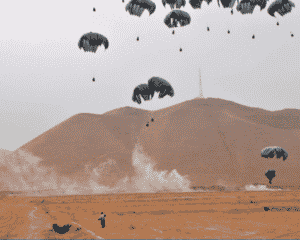 Parachutes slow the fall of the container via air trapped in the canopy, the fabric that puffs out into a balloon shape.